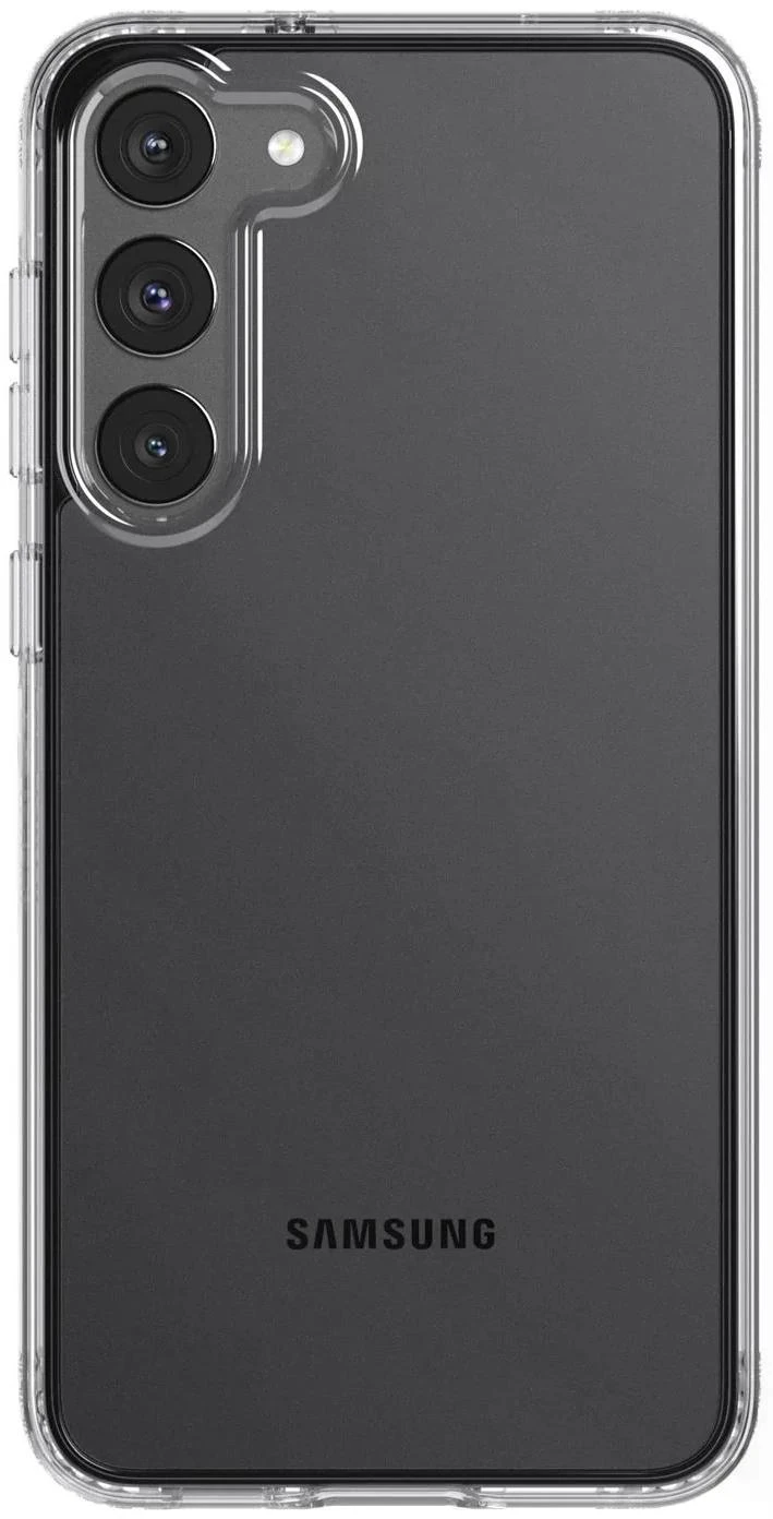 Das Evo Clear für das Samsung S23+ verfügt über UV-Schutzeigenschaften, ist kratzfest und hält Stürzen aus 3,6 m Höhe stand.